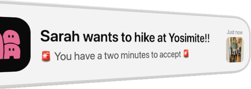 Friends have 2 minutes to lock in. No "maybe later." You're in or you're not. The best plans are the ones nobody overthinks.
