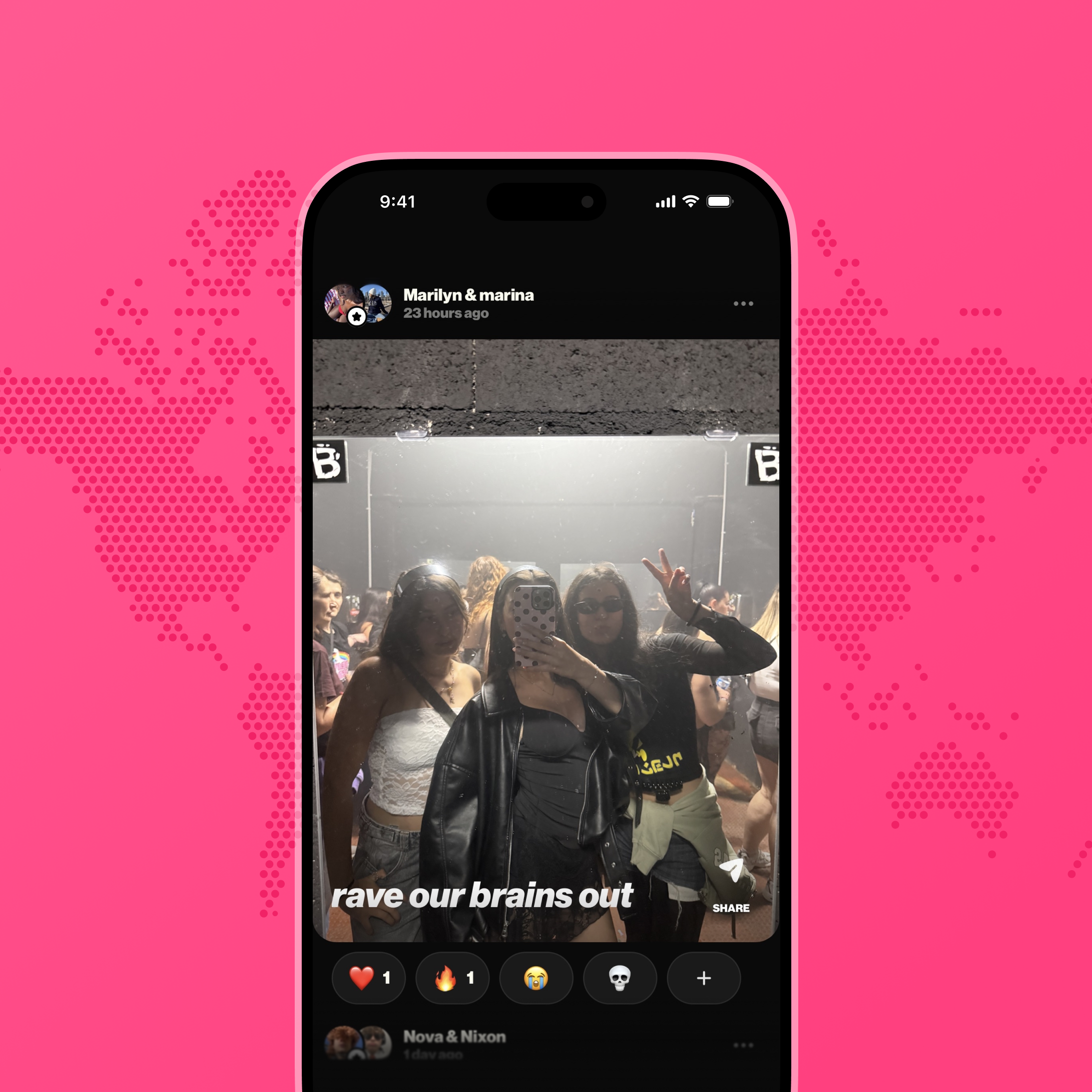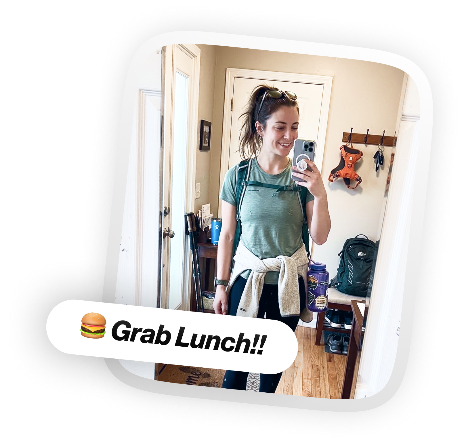 Snap a pic, say what you're up to, send it. Coffee run, random walk, taco hunt. Your nearby friends get pinged instantly.